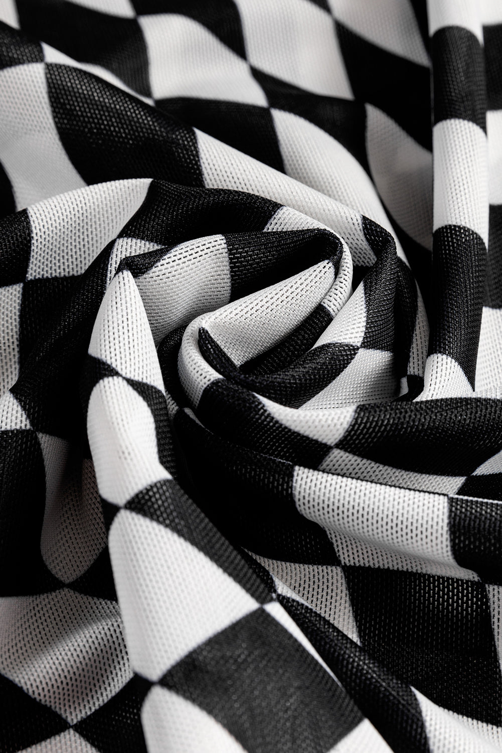 Checkered Mock Neck Long Sleeve Blouse