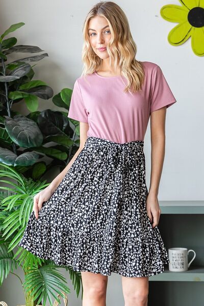 The Short Sleeve Solid and Animal Print Mini Dress offers a unique and stylish combination. The solid color sleeves contrast with the animal print body, creating a trendy and eye-catching look. This mini dress is perfect for making a statement and can be dressed up or down for various occasions, providing a versatile and fashionable outfit option.