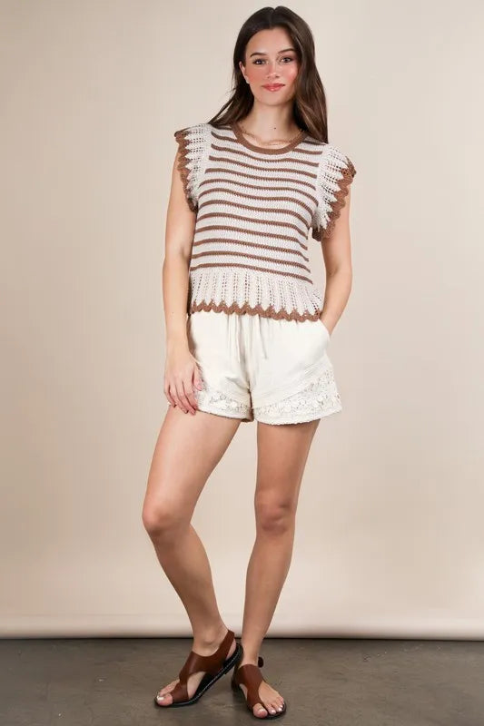 VERY J Ruffle Detail Striped Knit Sweater Top