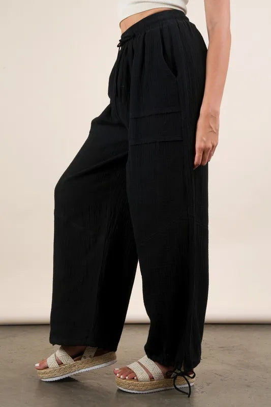 VERY J Wide Leg Gauze Solid Pants