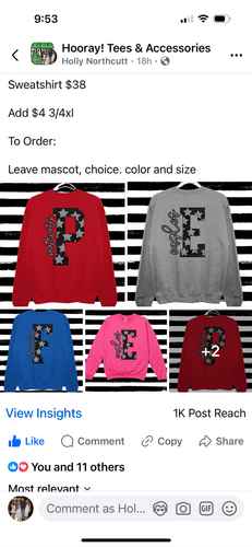Adult S sweatshirt Adult XL sweatshirt Red, Shallowater Mustangs